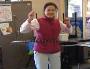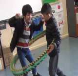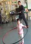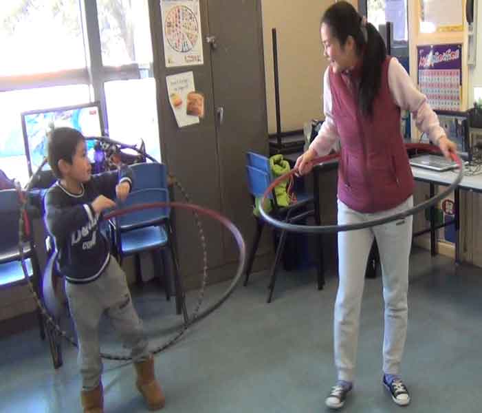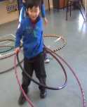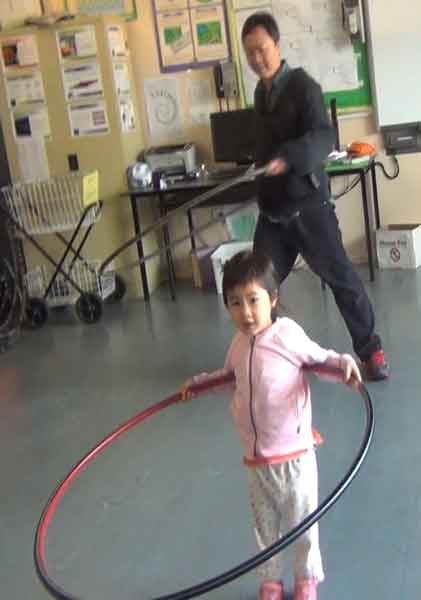 Some of our students are autisms, they are usually isolated themselves from other friends in play. When we put them into hooping practice: they were just wiggling and required our patiently instructing. Our hooping exercise gave them feeling confidence and living harmony with others.