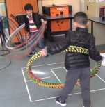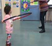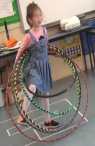 I will let my students bring big hoops home: their mums would be curious to try them on their body. If they require help, then we have giant loops to start when they come to collect their kids.